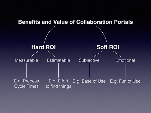 Die weichen Vorteile bei der Berechnung des ROI hängen grundsätzlich davon ab, wie Dein Kunde Deine Software verwenden wird bzw. wie er auf das Gesamtprojekt blickt - Beispiele: