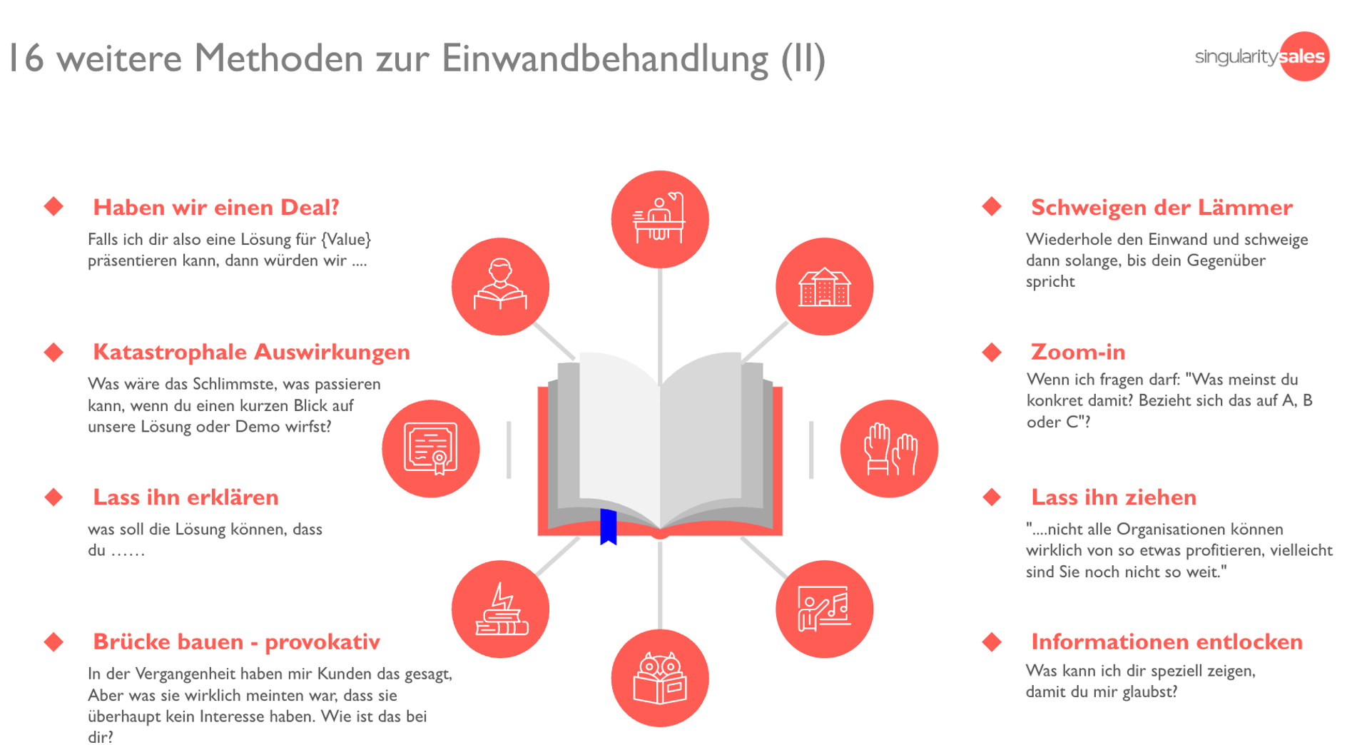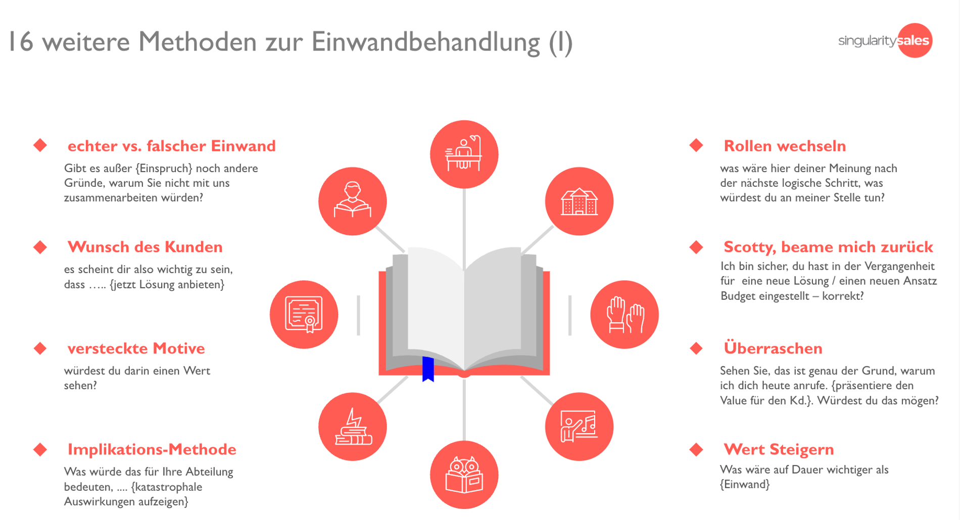 Weitere Möglichkeiten, einen potentiellen Kunden bei Einwänden herauszufordern sind die folgenden 16 Techniken: