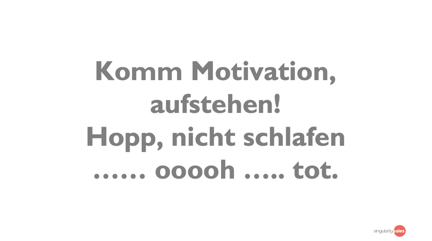 Wer das Wesen seines Gegenübers kenne, könne wirkungsvoller und gezielter motivieren. Das ist schlussendlich der Grund, warum SingularitySales keine Sales-Trainings von der Stange anbietet. Wir lernen zunächst einmal das Team kennen (die Gründer, das Sales-Team), wir sprechen mit den Kunden unserer Kunden und verstehen, welcher Trigger sie veranlasst hat, das Produkt unserer Mandanten zu kaufen. Unterm Strich ist dieser Blogbeitrag ein erfrischend ehrlicher Ratgeber, der mit den gängigen Motivationssprüchen aufräumt.
