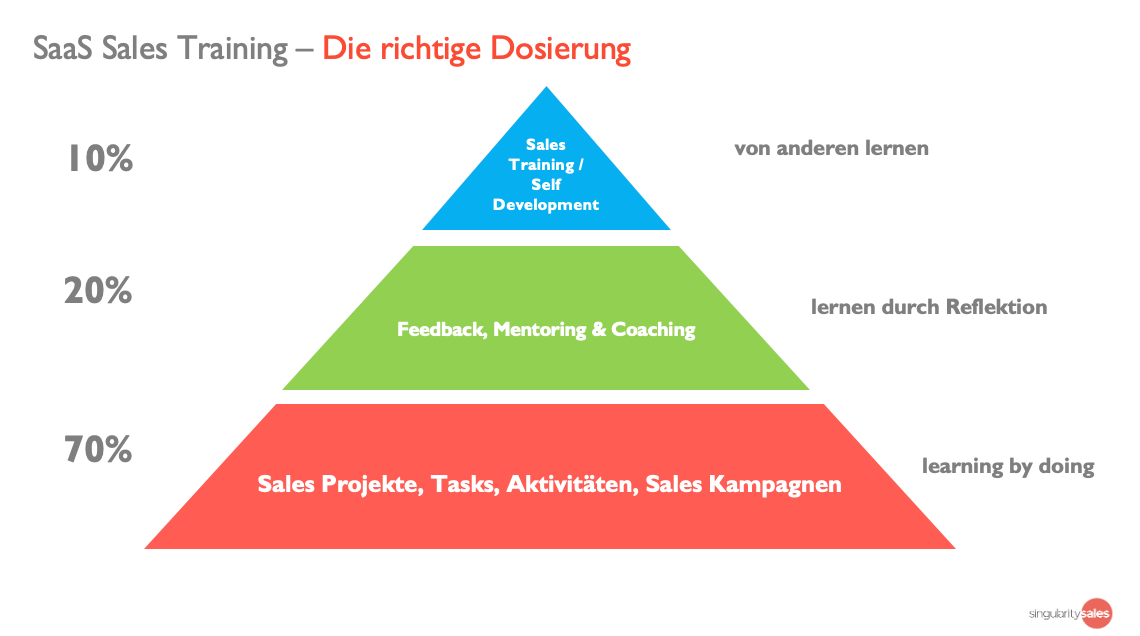 Das bedeutet auch, dass Ihr selbst die erfahrensten und besten Verkäufer Eures Teams kontinuierlich schulen müsst. Schlussendlich trainiert auch der weltbeste Tennisspieler und der weltbeste Torschütze Tag für Tag weiter.