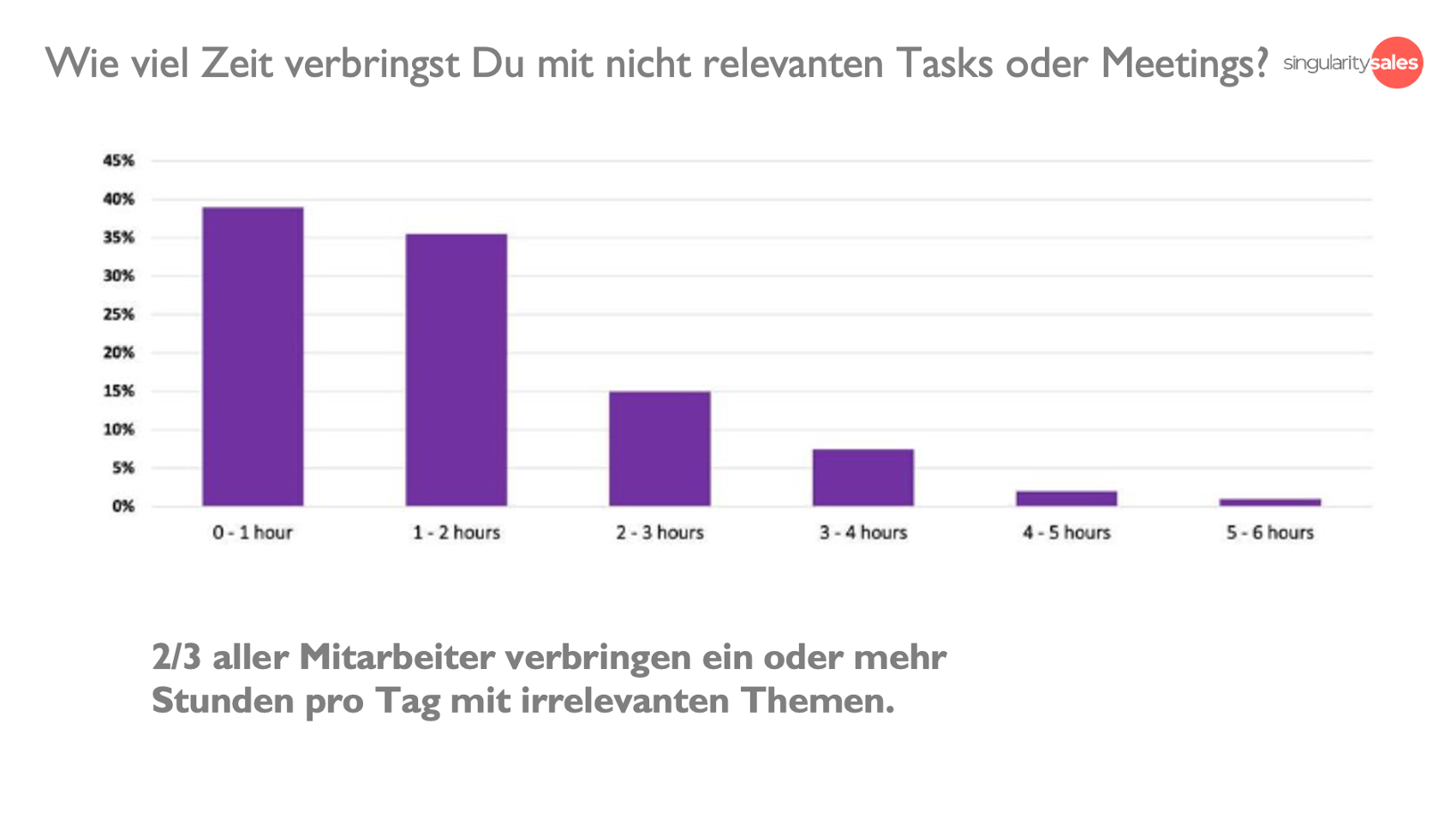 Laut einer Umfrage aus dem Jahr 2021 verschwenden deutsche Mitarbeiter im B2B Vertrieb mehr als 10 h pro Woche mit Meetings, wovon mit hoher Wahrscheinlichkeit mehr als die Hälfte unnötig ist.